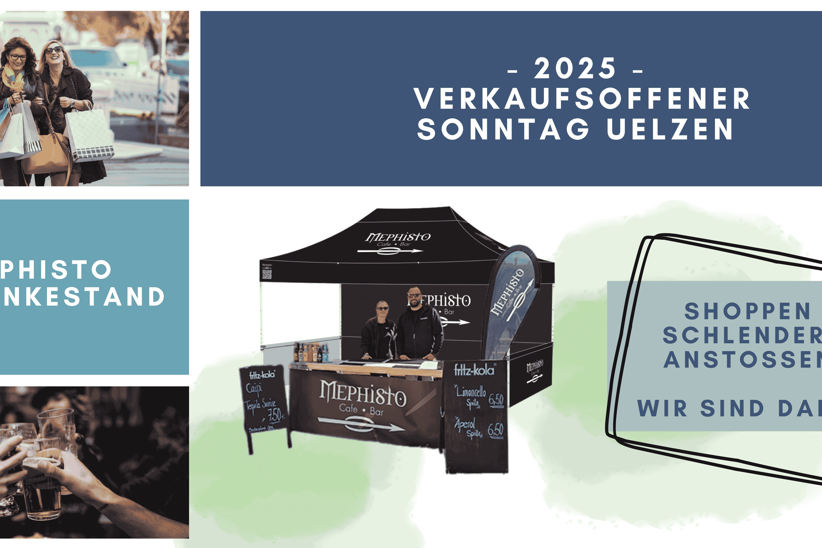 Verkaufsoffener Sonntag in Uelzen am 06. April und 26. Oktober 2025! Erlebe das Shopping-Feeling und lass den Tag entspannt am Getränkestand vom Mephisto ausklingen.